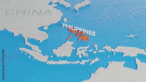 Philippines highlighted on a white simplified 3D world map. Digital 3D render.