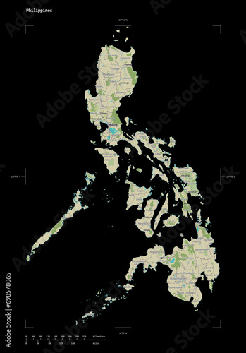 Philippines shape on black. Topographic Map