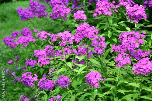 Phlox paniculata (Garden phlox) in bloom during summer. bright pink violet flowers in a flower bed