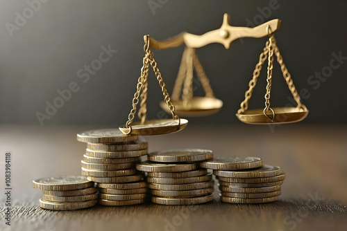 Photo - Balancing Act Justice Scales Money Coins Finance Law Court Legal Business