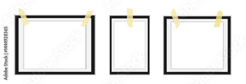 Photo frames with shadow, template background for photography, polaroid photo frames collection, vector png on transparent background. Blank photo frame mockup.