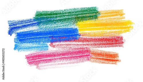 Photo grunge hand drawn colorful scribble wax pastel, rainbow crayon isolated on white. Chalk Pastel Drawing. Illustration