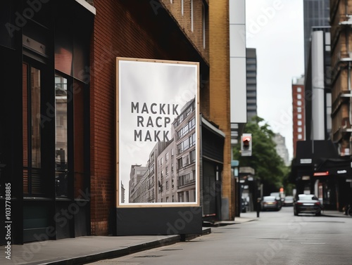 photo of a large advertising poster mockup in an unexpected location