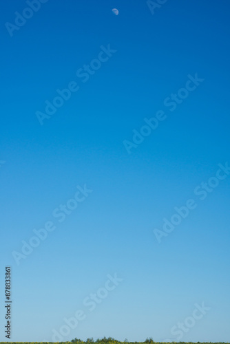 Photo of the moon in the blue daytime sky