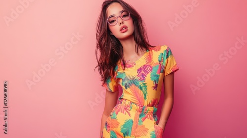 Photo portrait of pretty teen girl show okey wear trendy colorful outfit isolated on pink color background