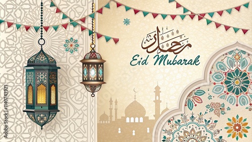 Photo Ramadan Glow Mosque Moon and Bokeh islamic ramadan eid mubarak kareem mosque background