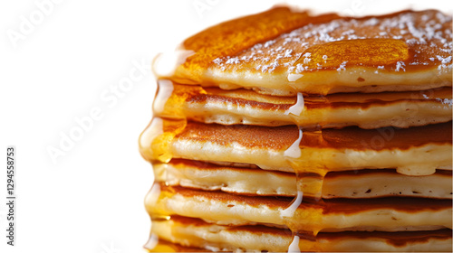 Photo Stack of Pancakes with Syrup and Powdered Sugar