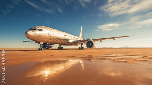 Photograph of a row of abandoned jetliners, their once-proud silhouettes now fading into the desert sunset, a poignant reminder of a bygone era of aviation.