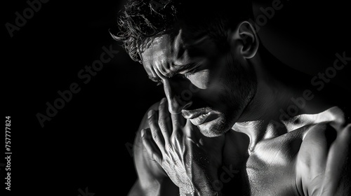 Photography of a man gripping his chest in pain, Generative ai.