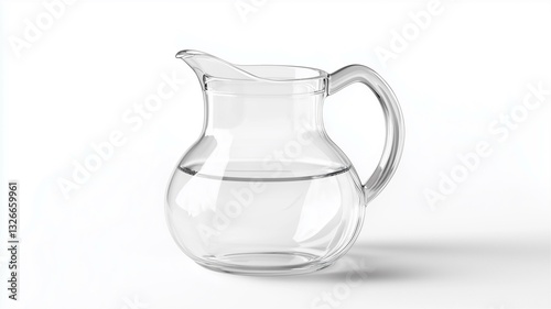 Photorealistic image of a clear glass salad dressing container with a spout, isolated on a white background