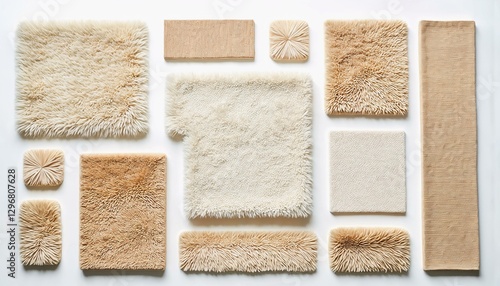 Photorealistic layout of rectangular beige rugs emphasizing home decor and minimalism