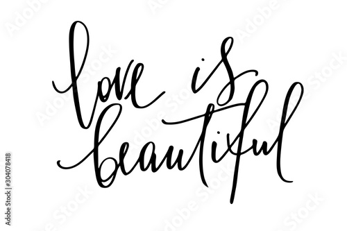 Phrase text valentines day card love is beautiful handwritten text vector