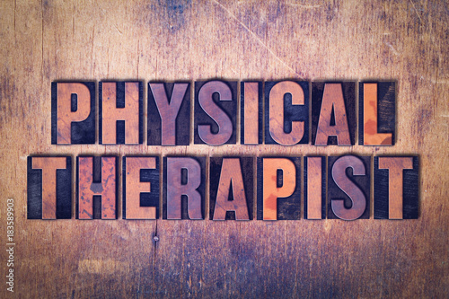 Physical Therapist Theme Letterpress Word on Wood Background