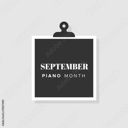 Piano month. September. Grey blurred background. Vector illustration, flat design