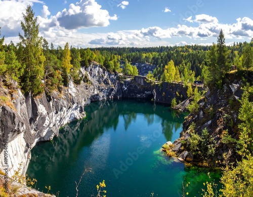 Picturesque view of the Marble Canyon in Ruskeala, Karelia, Russian Federation