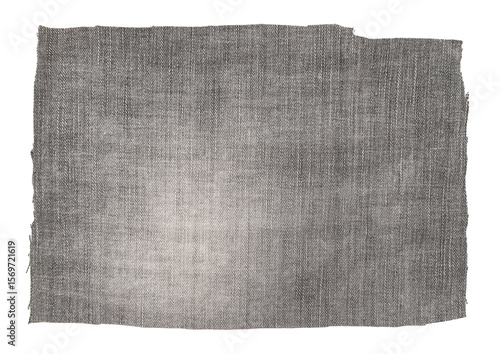Piece of black torn denim on a white background. Denim texture