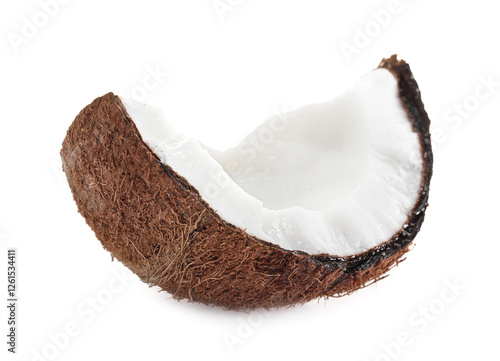 Piece of cracked coconut isolated on white