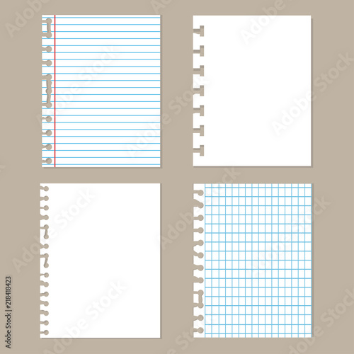 Pieces of torn paper.Set of different notebook paper. School sheets