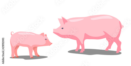 Pig and piggy on green background. Vector flat illustration.