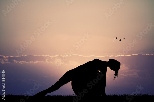 pilates silhouette at sunset