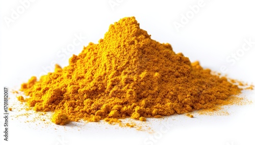 Pile of bright yellow turmeric powder on white background (3)