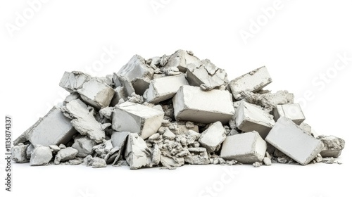 Pile of Broken and Crushed White Bricks and Debris on a Clean White Background for Construction, Renovation, and Demolition Projects Use in Various Concepts