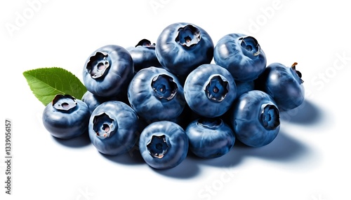 Pile of Fresh Blueberries with Leaf Isolated on White Background