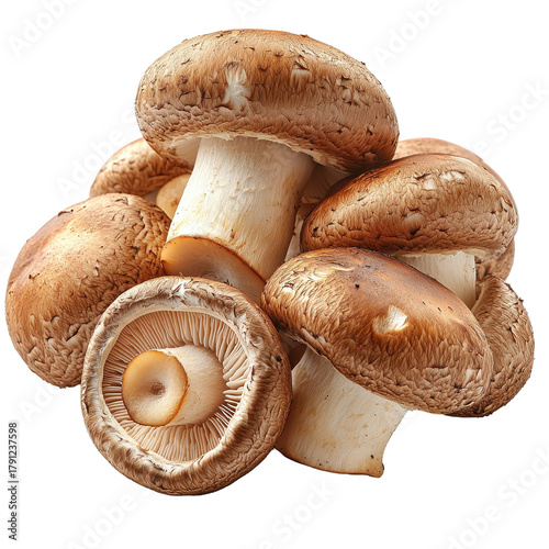 pile of fresh champignon mushrooms isolated on a transparent background