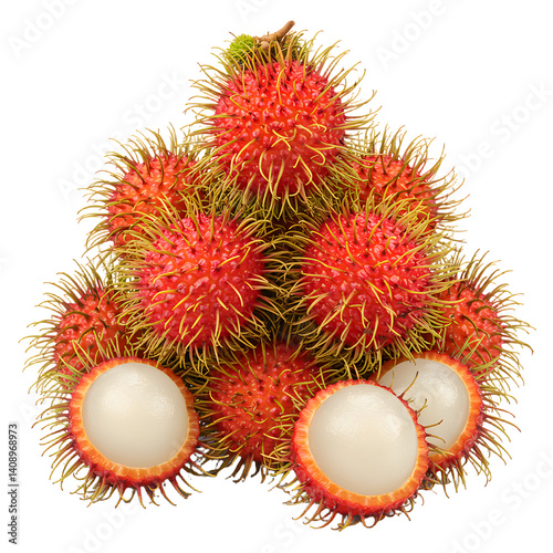 Pile of Fresh Rambutans Delicious Tropical Fruit Red and White
