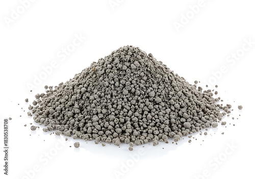 Pile of Gray Granular Fertilizer Isolated on White Background Ideal for Agricultural and Gardening Concepts