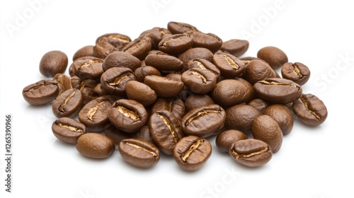 Pile of Roasted Coffee Beans Isolated on a White Background Closeup