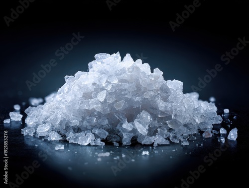 pile of salt crystals isolated on a black background