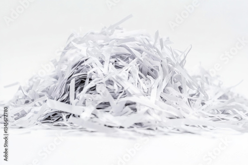 Pile of shredded paper on white background