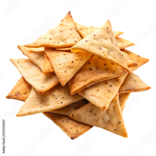 Pile of Triangle Shaped Tortilla Chips Isolated on Black background