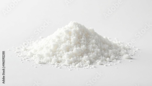 Pile of white granulated sugar on white background, ingredient, granulated, refined