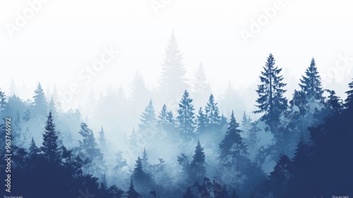 Pine Forest Silhouettes with a Gradient from Light Gray to Dark Blue