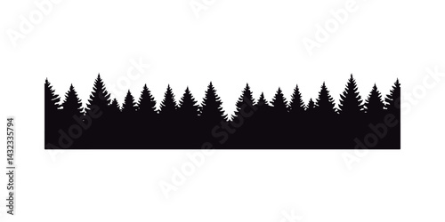 Pine Tree Forest Black Silhouette Border. Woodland Silhouette Background.
