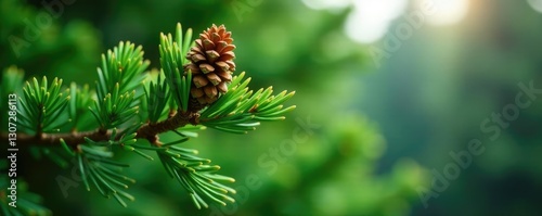 pine tree with full cone on top and branches stretching outwards, evergreen, nature