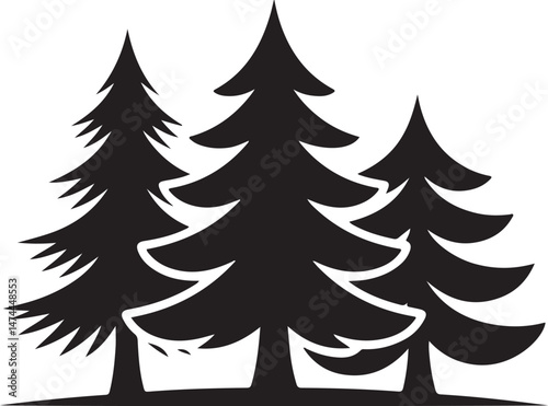 Pine Trees black silhouette with layered branches, showcasing nature and tranquility in a minimalist vector design