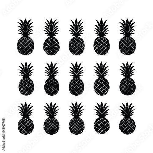 Pineapple Set Black Silhouette Clipart on White Background