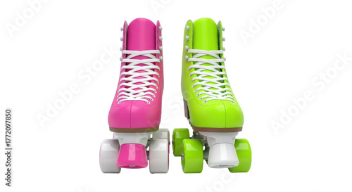 Pink and green roller skates, retro style isolated PNG with Transparent Background