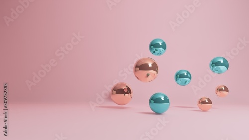 Pink and silver abstract 3d spheres on vibrant background