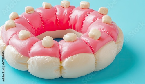 Pink and white ring-shaped pastry