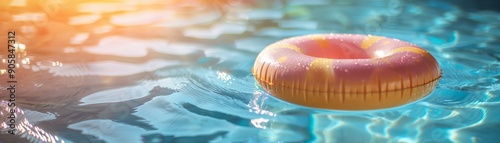 Pink and yellow donut pool float in shimmering blue water
