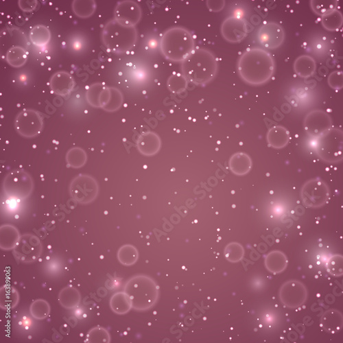 Pink background with lights and bokeh. Vector illustration. Holiday poster template design, decor for Valentines day