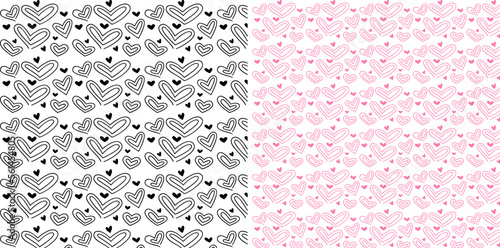 Pink Black Line Heart Doodle Pattern Set