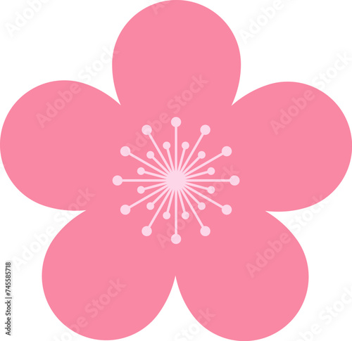 Pink cherry blossoms branch icon. Japanese Sakura flower. Cherry branch with pink sakura. Flowers, plants, spring, cute, etc. Vector.