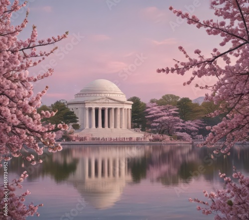 Pink cherry blossoms frame Jefferson Memorial, sakura, capital