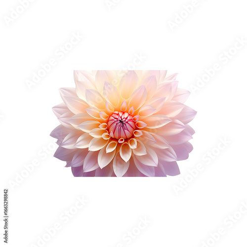 Pink dahlia flower in vibrant full bloom with detailed soft petals isolated on white background