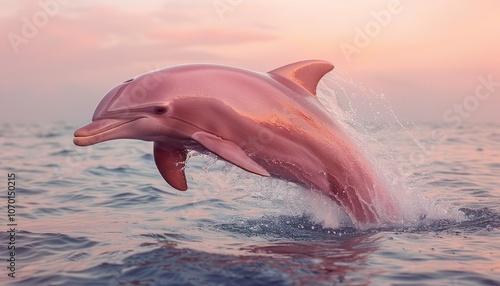 Pink dolphin in jumping pose on a transparent